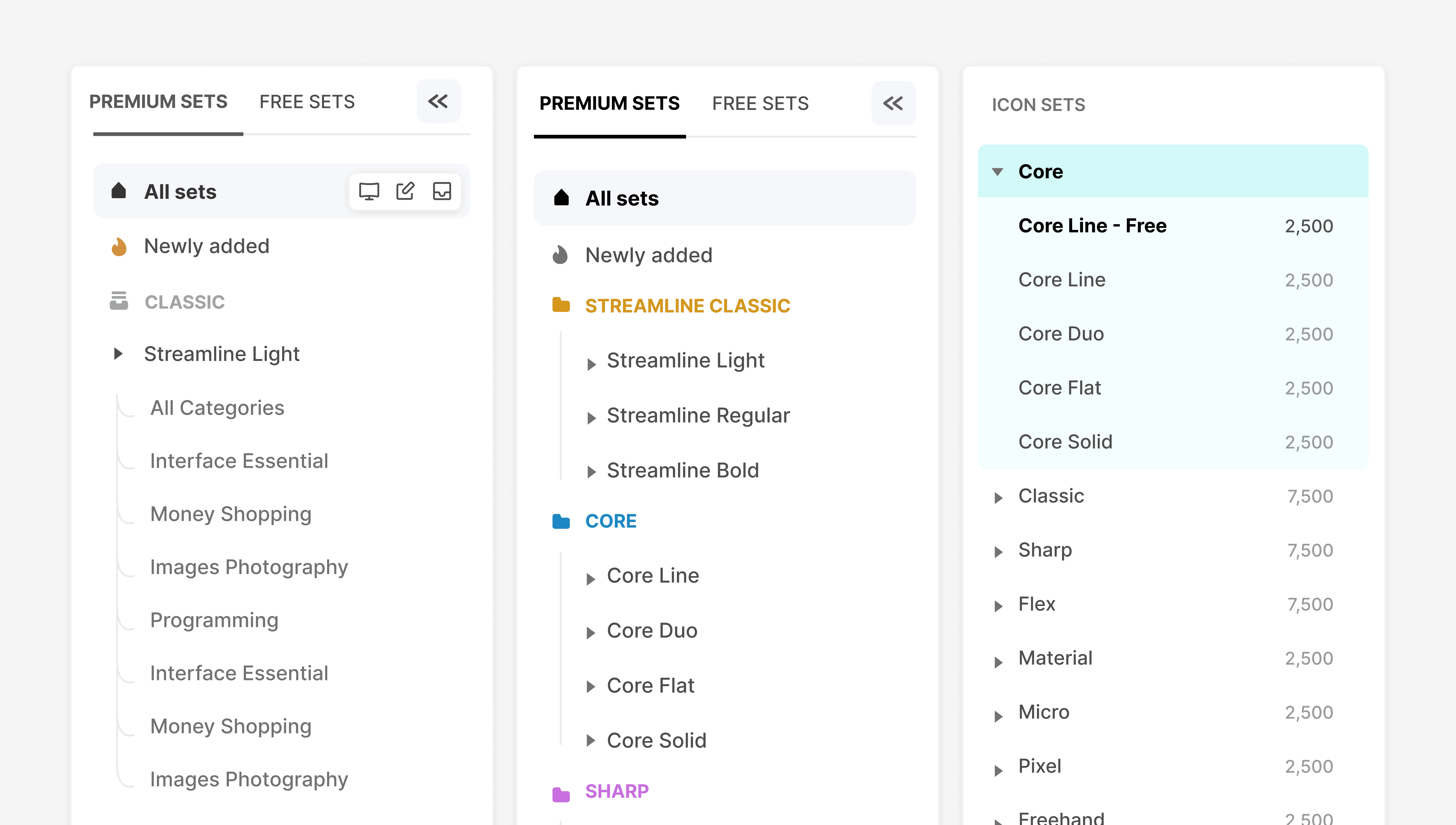 Our sidebar is great for both beginners and power users. It lets new users quickly explore sets and switch between them easily. And for those who are more familiar with the app, it groups sets by bundles, so it's quick to find what they need.