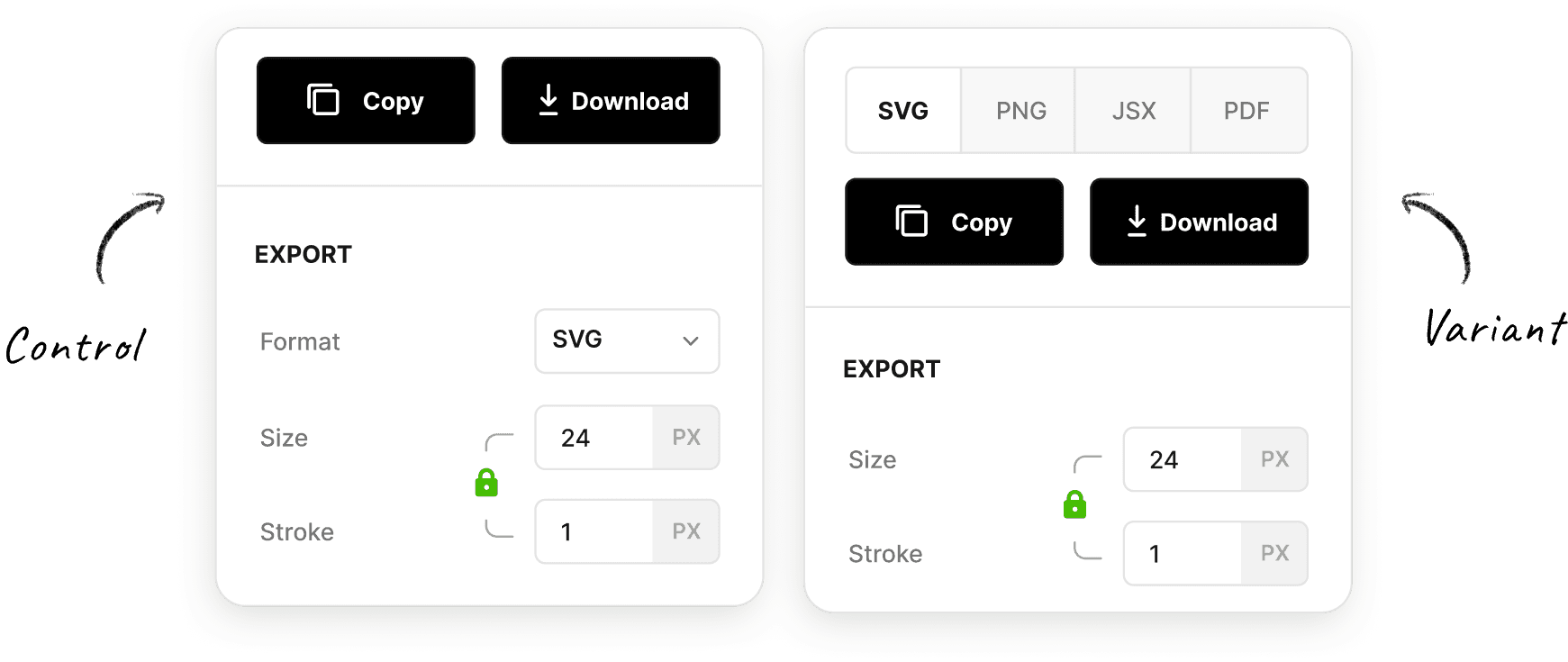 Variant with export options as visible tabs