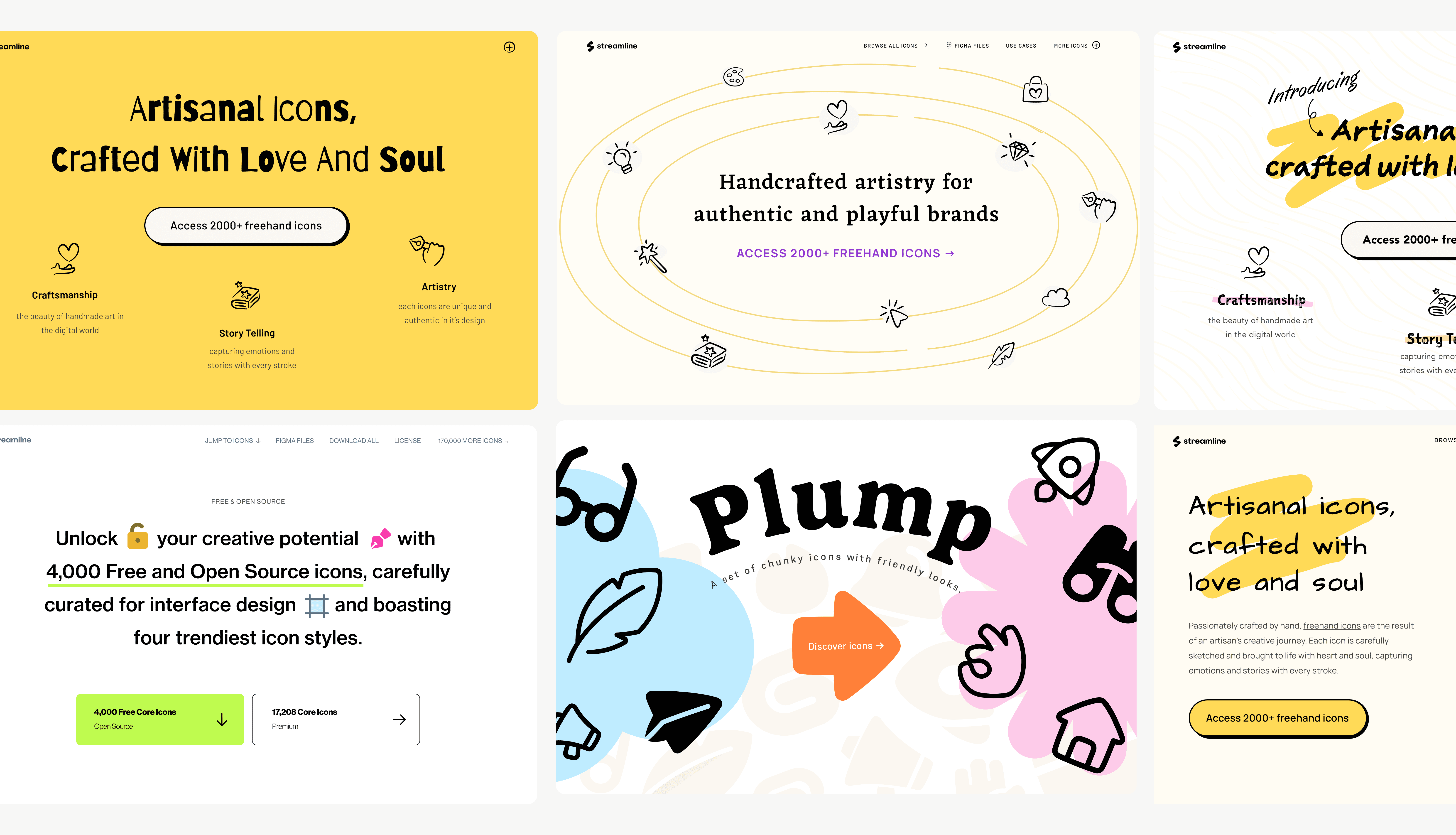 Streamline offers a vast range of icon sets with diverse styles and varieties, but users often struggled to understand their use cases and reached out for guidance. To address this, we created dedicated landing pages tailored to specific user groups—graphic designers, marketers, UI designers, and presentation makers—showcasing the perfect icon styles to suit their unique requirements.