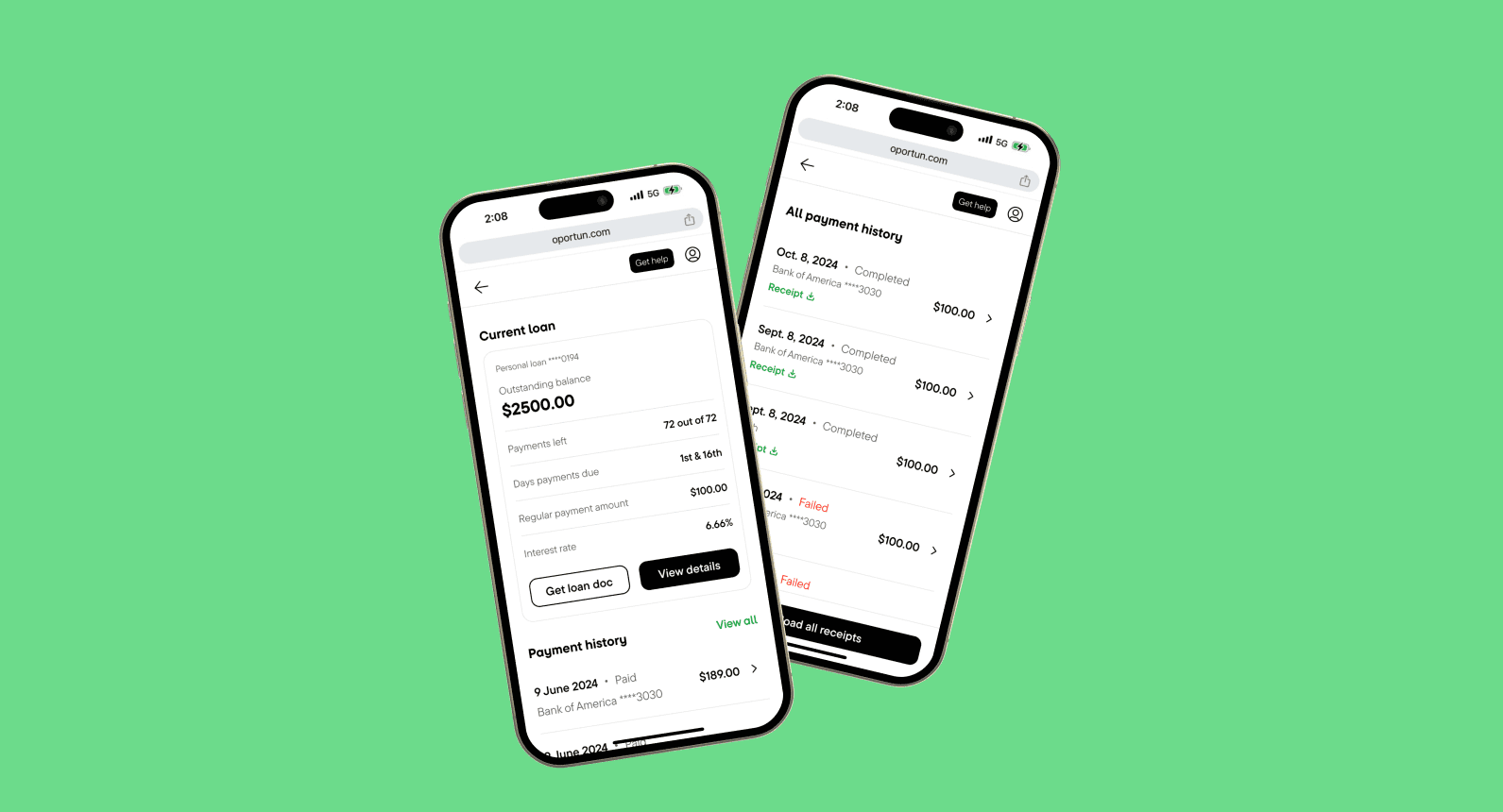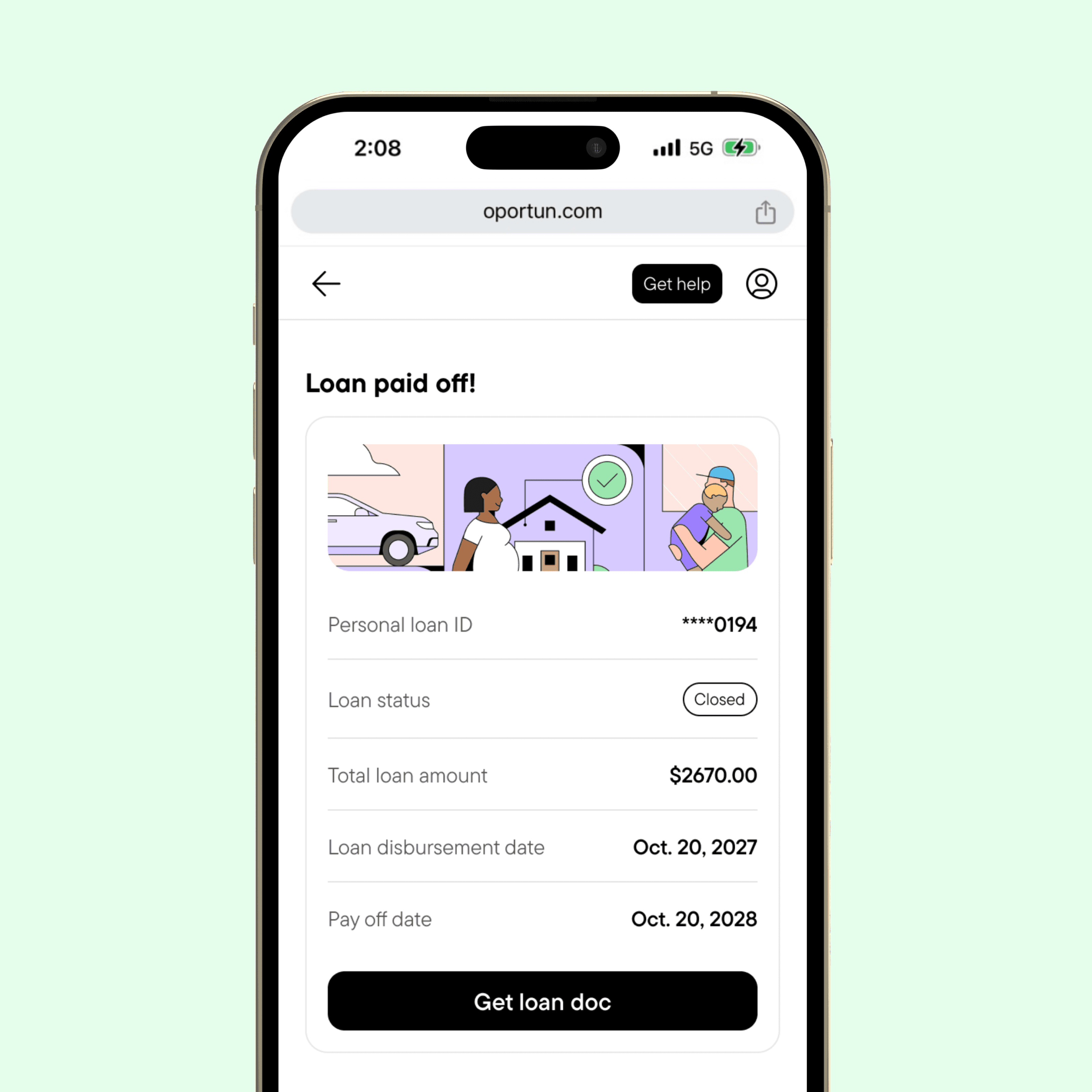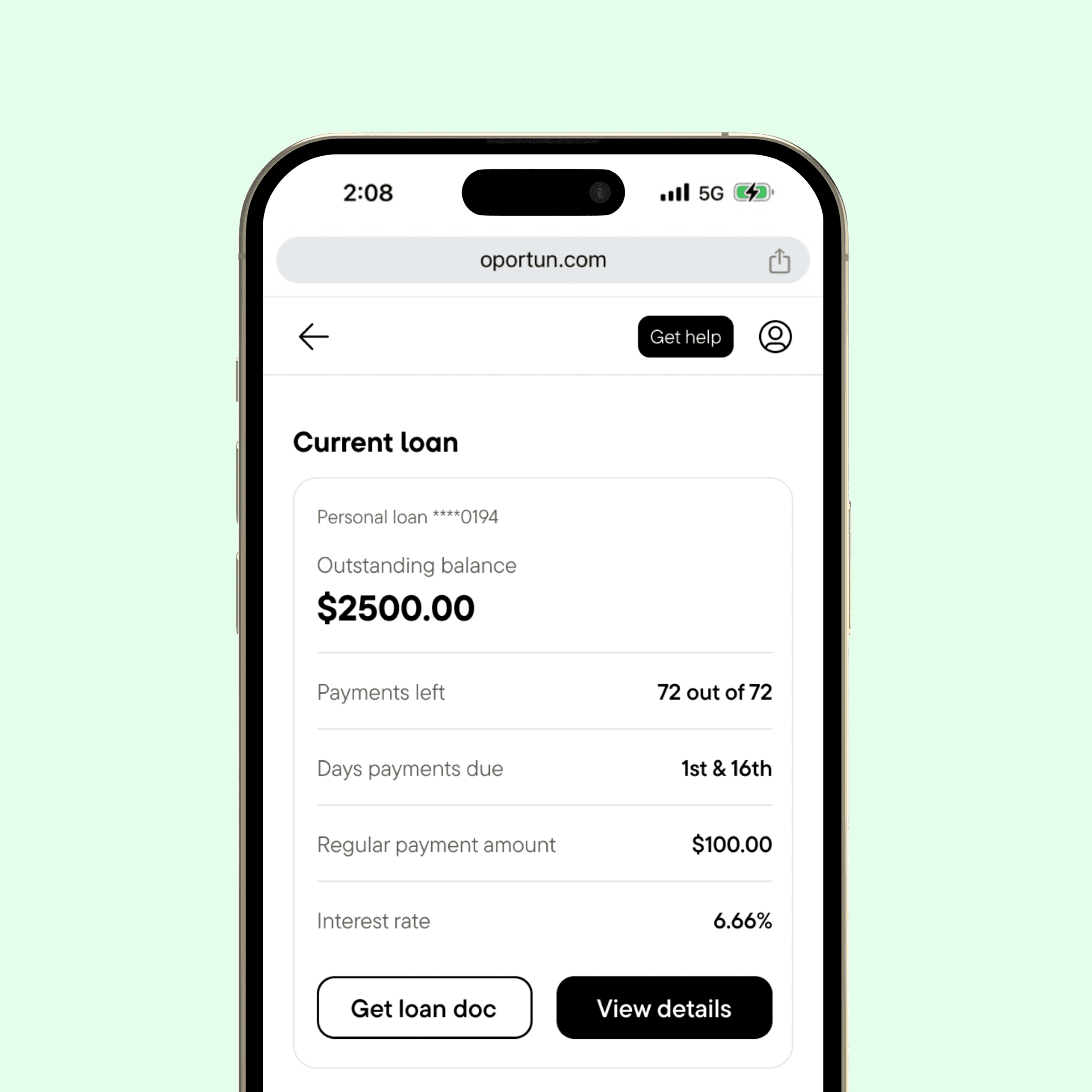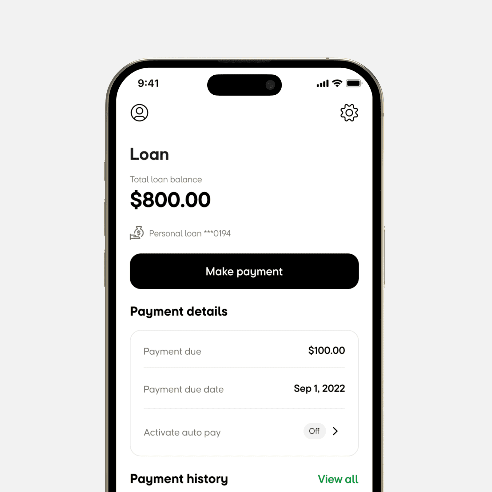 Members can see a clear breakdown of interest, principal, and fees. They can also track their progress after each payment.